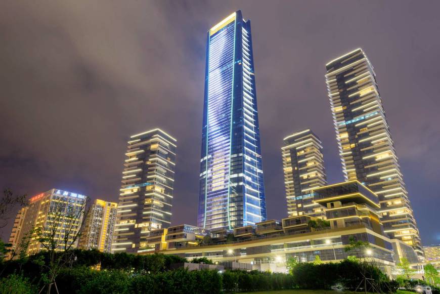 Located on the northwest side of the intersection of Dongbin Road and Keyuan Avenue in the Houhai Central Area, the project is a prime waterfront site adjacent to the inner lake of Shenzhen Bay, and is also the project seen from the Shenzhen Bay Port to the south. It is a high-end urban complex integrating offices, residences, hotels, and commercial facilities, and will become a landmark building complex in the Houhai area. The land areas are 32,426.65 square meters and 13,657.82 square meters respectively, with a total land area of 46,084.47 square meters.